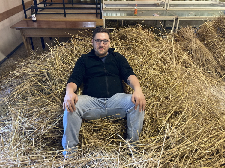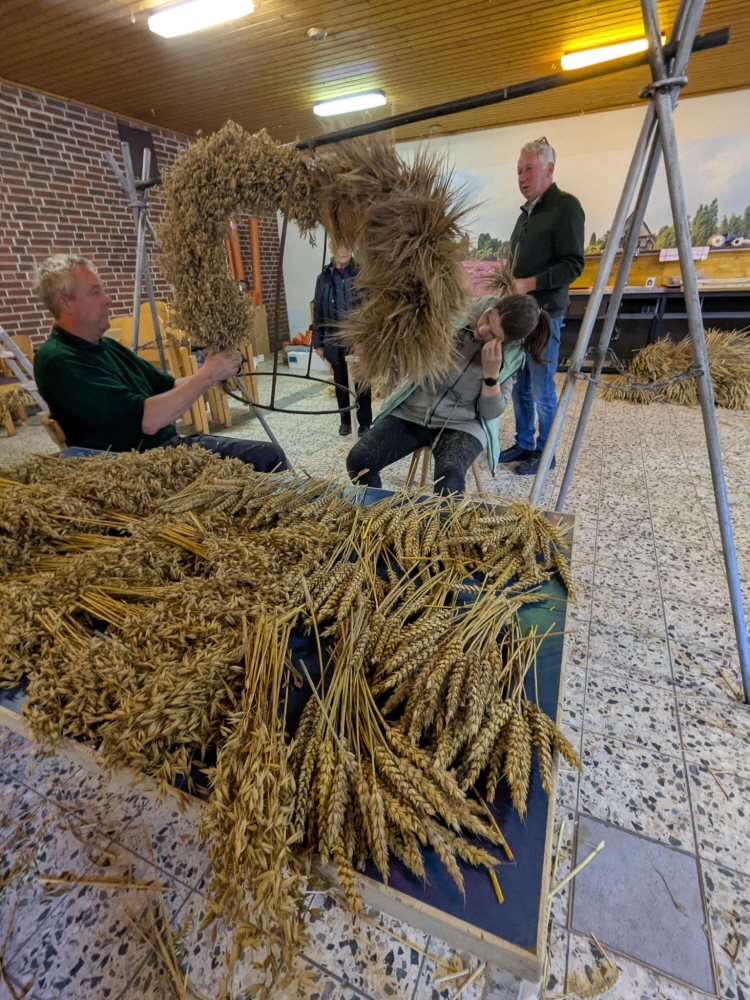 Jan-Peter hatte im Sommer die vier traditionellen Getreidesorten Gerste, Hafer, Roggen und Weizen vor der Ernte eingeholt. Nun konnten sie in ihre Kronenform gebunden werden.