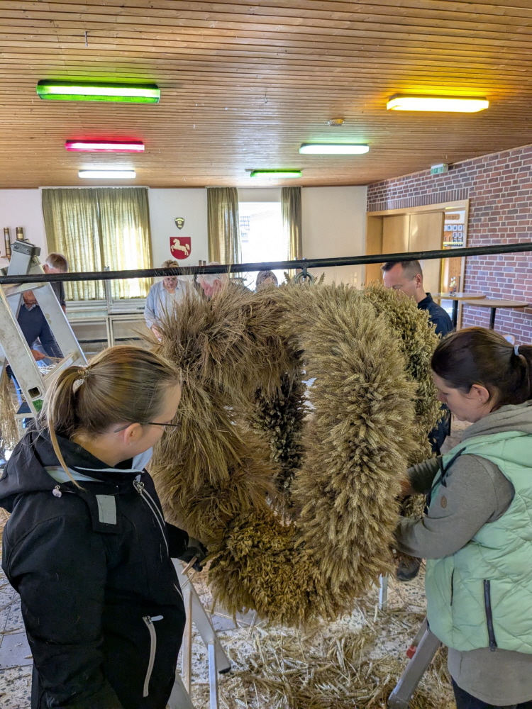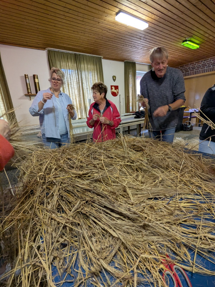 Viele fleißige Helfer waren der Einladung unseres Erntemeisters Jan-Peter Weber gefolgt und trafen sich motiviert und voller Tatendrang zum Erntekrone binden im Schützenhaus in Alvern.